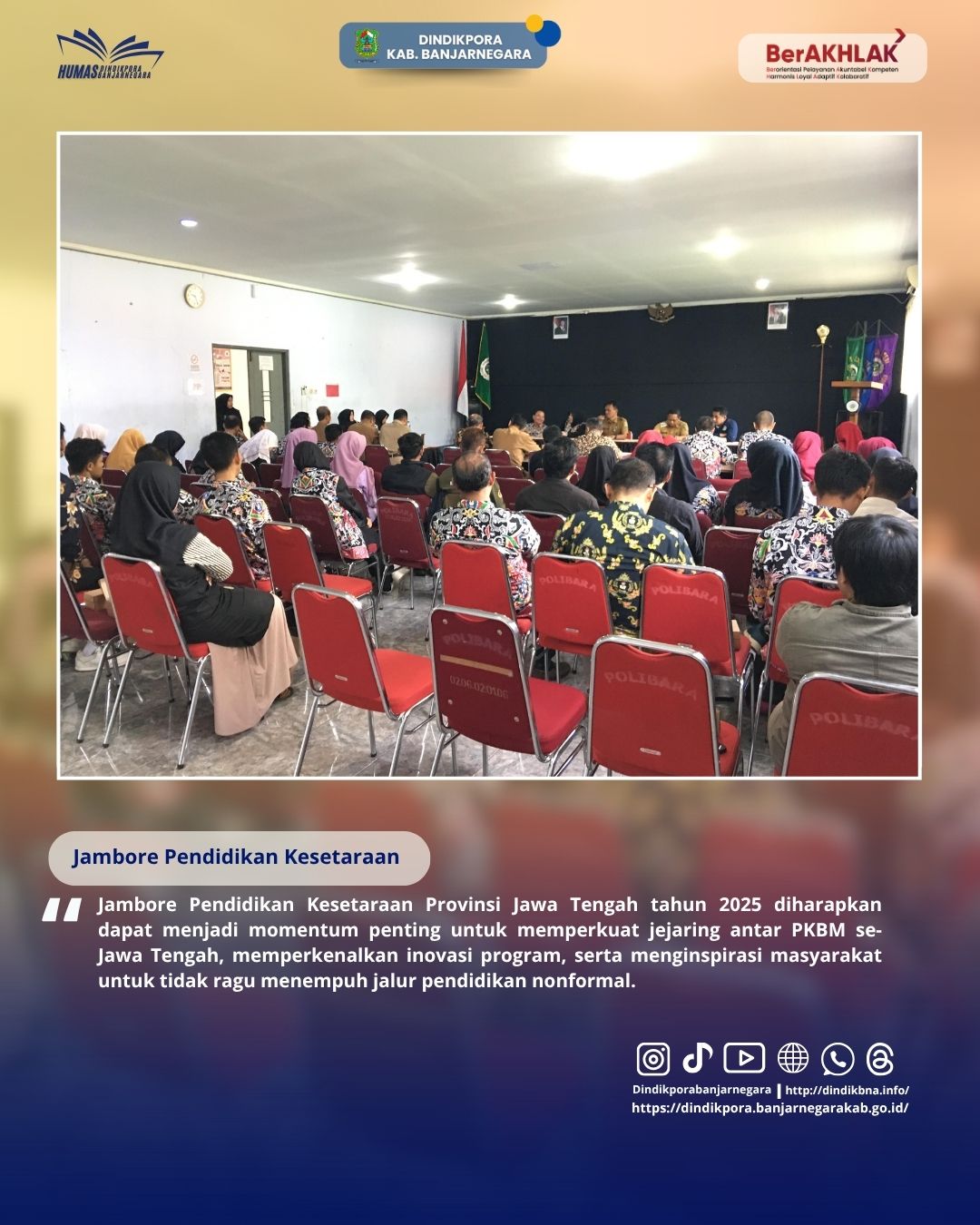 Banjarnegara – Dinas Pendidikan, Kepemudaan, dan Olahraga (Dindikpora) Kabupaten Banjarnegara menggelar Rapat Koordinasi Persiapan Tes Kemampuan Akademik (TKA) Jenjang Paket A, B serta Ujian Pendidikan Kesetaraan (UPK) Tahun 2026 pada Selasa, 10 Maret 2026. Kegiatan berlangsung di Ruang Diponegoro Lantai 3C Dindikpora Banjarnegara mulai pukul 08.00 WIB hingga selesai. Rapat ini menjadi langkah awal untuk memastikan seluruh proses pelaksanaan ujian pendidikan kesetaraan dapat berjalan lancar dan sesuai ketentuan yang berlaku.Kegiatan ini di ikuti 24 PKBM dan 1 SKB .