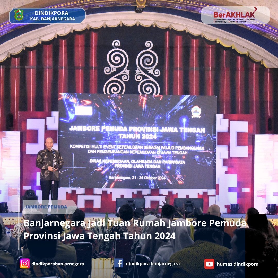 Banjarnegara – Jambore Pemuda Provinsi Jawa Tengah Tahun 2024 resmi dibuka pada tanggal 21 Oktober 2024 di Komplek Hotel Surya Yudha, Banjarnegara. Kegiatan yang berlangsung hingga 24 Oktober 2024 ini diselenggarakan oleh Dinas Kepemudaan, Olahraga, dan Pariwisata (Disporapar) Provinsi Jawa Tengah, dengan tema &doublequote;Kompetisi Multi Event Kepemudaan sebagai Wujud Pembangunan dan Pengembangan Kepemudaan di Jawa Tengah&doublequote;. Tema ini menekankan pentingnya peran aktif pemuda dalam pembangunan bangsa melalui partisipasi nyata.