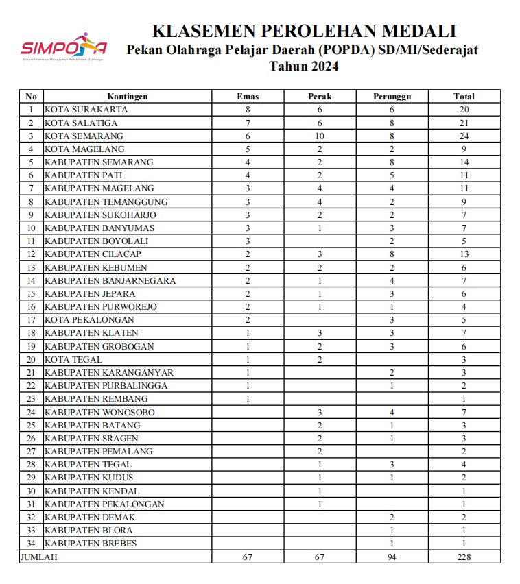 Ini adalah perolehan medali Kabupaten Banjarnegara dalam POPDA Jateng 2024 untuk jenjang SD dan SMP✨ Selamat kepada seluruh atlet dan pelatih atas prestasi gemilangnya! Kerja keras dan semangat telah mengharumkan nama Banjarnegara. Teruslah berprestasi untuk membawa lebih banyak kebanggaan di masa depan! #BanjarnegaraJuara #POPDAJateng2024 #SemangatSportivitas