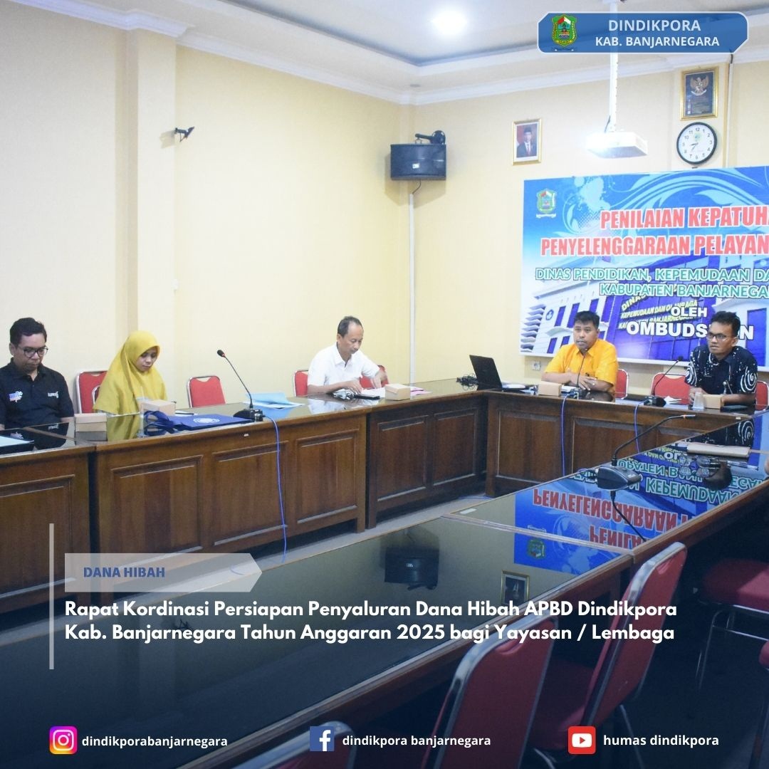Rapat Koordinasi Persiapan Penyaluran Dana Hibah APBD Dindikpora Kab. Banjarnegara Tahun Anggaran 2025