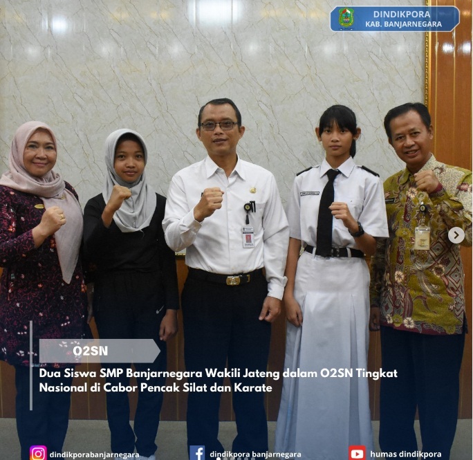 Banjarnegara kembali mencatat prestasi gemilang di dunia pendidikan, khususnya di bidang olahraga. Tahun ini, dua siswa SMP dari Banjarnegara berhasil lolos ke tingkat nasional dalam ajang Olimpiade Olahraga Siswa Nasional (O2SN) Tahun 2024. Mereka adalah Aurelia Zivana Adventa dari SMPN 1 Banjarnegara yang akan bertanding di cabang olahraga (cabor) Karate Putri, dan Raya Salsabila dari SMPN 2 Satu Atap Pagedongan yang akan berlaga di cabor Pencak Silat.