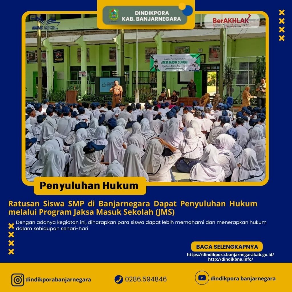 #Banjarnegara – Pengaruh narkoba dan tindak kekerasan di kalangan remaja menjadi ancaman serius, tidak hanya di perkotaan tetapi juga di wilayah pedesaan. Untuk memberikan pemahaman hukum kepada siswa, ratusan pelajar SMP di Banjarnegara mendapatkan penyuluhan melalui program Jaksa Masuk Sekolah (JMS).