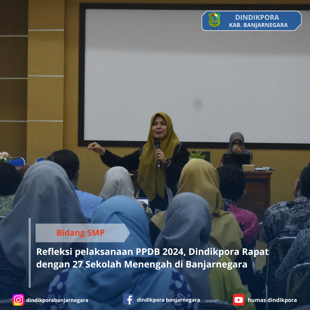 Banjarmegara - Dindikpora Banjarnegara melaksanakan Rapat Koordinasi Refleksi Pelaksanaan PPDB 2024 bersama Kepala Sekolah Menengah dan Panitia PPDB SMP dari 27 sekolah di Banjarnegara.