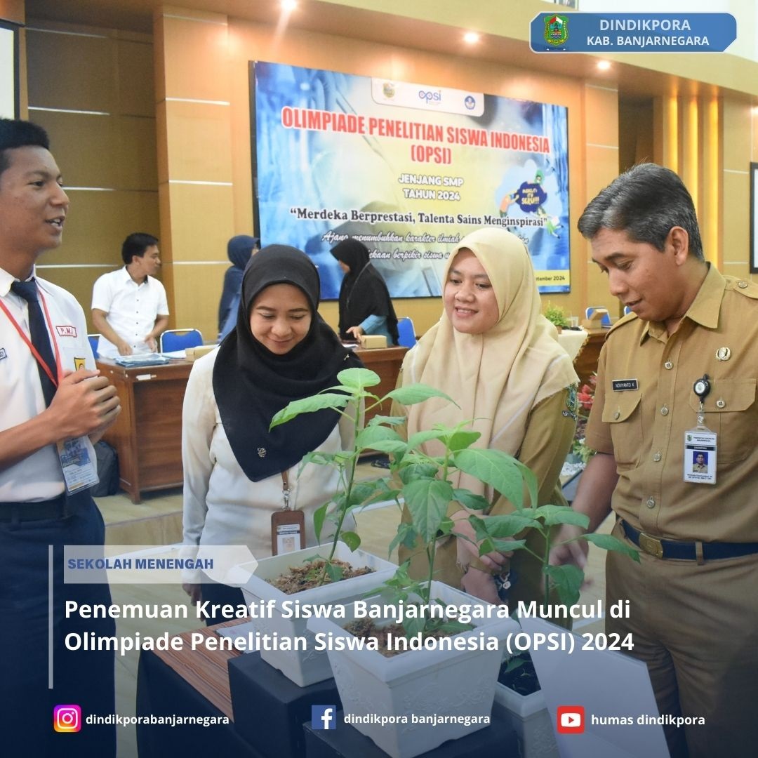 Banjarnegara – Olimpiade Penelitian Siswa Indonesia (OPSI) tingkat Kabupaten Banjarnegara resmi digelar pada Selasa (03/09/2024), di aula lantai 3 Gedung Dinas Pendidikan, Kepemudaan, dan Olahraga (Dindikpora) Banjarnegara. Acara ini bertujuan untuk mengembangkan minat, bakat, dan potensi siswa dalam bidang penelitian, serta mempersiapkan mereka untuk bersaing di tingkat nasional.