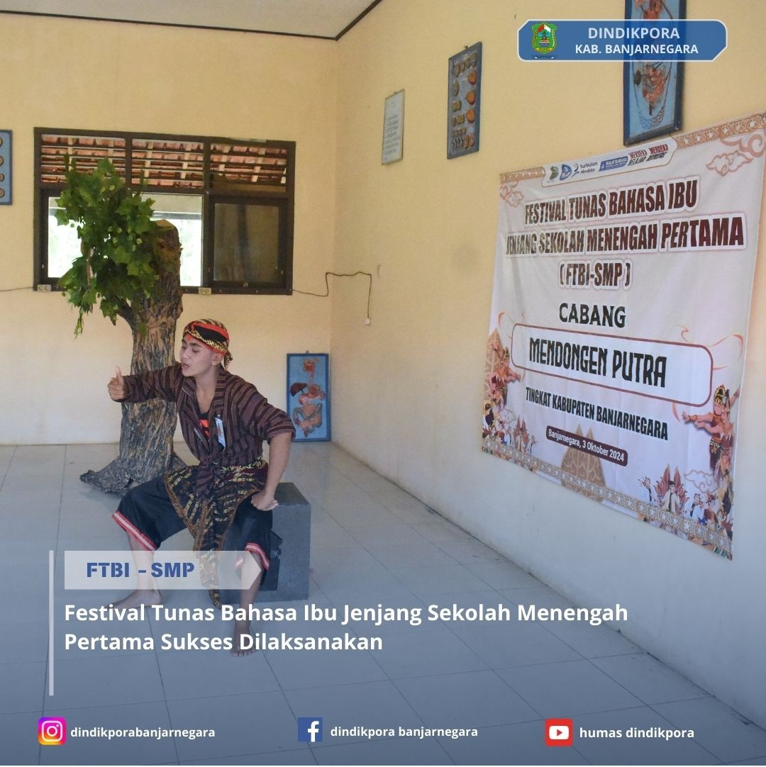 Banjarnegara – Dinas Pendidikan, Kepemudaan, dan Olahraga (Dindikpora) Kabupaten Banjarnegara sukses menggelar Festival Tunas Bahasa Ibu (FTBI) jenjang SMP tahun 2025 yang berlangsung di SMP Negeri 1 Banjarmangu, pada Selasa, 23 September 2025. Kegiatan ini merupakan ajang tahunan yang bertujuan menggali potensi, minat, dan bakat siswa dalam pelestarian bahasa dan budaya Jawa.