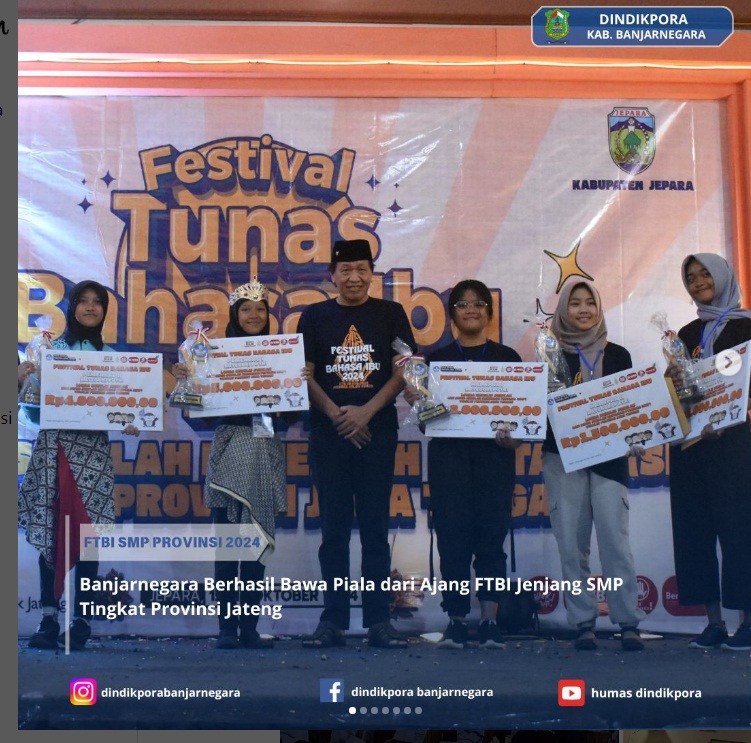 Siswa-siswi jenjang Sekolah Menengah Pertama (SMP) asal Kabupaten Banjarnegara kembali menorehkan prestasi gemilang di ajang Festival Tunas Bahasa Ibu (FTBI) tingkat Provinsi Jawa Tengah tahun 2025 yang digelar di Kota Solo pada 14–16 Oktober 2025.