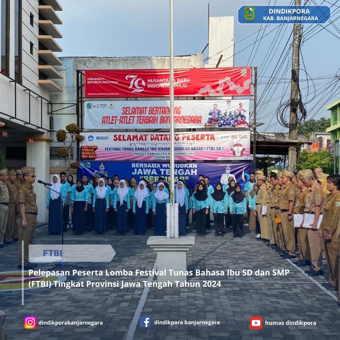 Banjarnegara – Sebanyak 28 siswa berprestasi dari Banjarnegara dilepas oleh Kepala Dinas Pendidikan, Kepemudaan, dan Olahraga (Dindikpora) Kabupaten Banjarnegara untuk mengikuti Festival Tunas Bahasa Ibu (FTBI) di tingkat Provinsi Jawa Tengah. Acara pelepasan ini berlangsung pada Senin (14/10/2024), di mana Kepala Dindikpora memberikan semangat dan pesan kepada para peserta agar percaya diri dan menunjukkan kemampuan terbaik mereka.