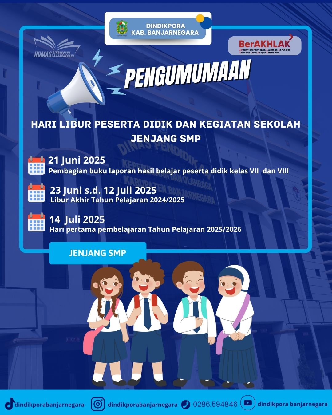 #InfoSMP #RaporSMP #LiburSekolah #TahunAjaranBaru #Banjarnegara #DindikporaBanjarnegara #PelajarHebat #SekolahMenyenangkan #BelajarBahagia